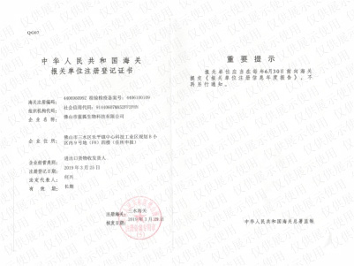 中華人民共和國報關單位注冊登記證書